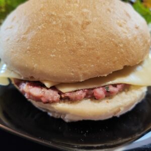Hamburguesa con doble de pollo, lechuga, tomate, cebolla, piquillo, espárrago, york, queso y huevo en tamaño normal. Puedes elegir ingredientes a mayores.